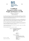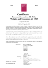 UK national certificates for intoxicating liquor beer, cider and wine meters issued by the Office for Product Safety and Standards in accordance with the provisions of section 12 of the Weights and Measures Act 1985.